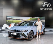 Mario Götze, Markenbotschafter des koreanischen Autoherstellers Hyundai und Profi von Eintracht Frankfurt, ist jetzt in einem Ioniq N unterwegs. Ulrich Mechau, President & CEO der Hyundai